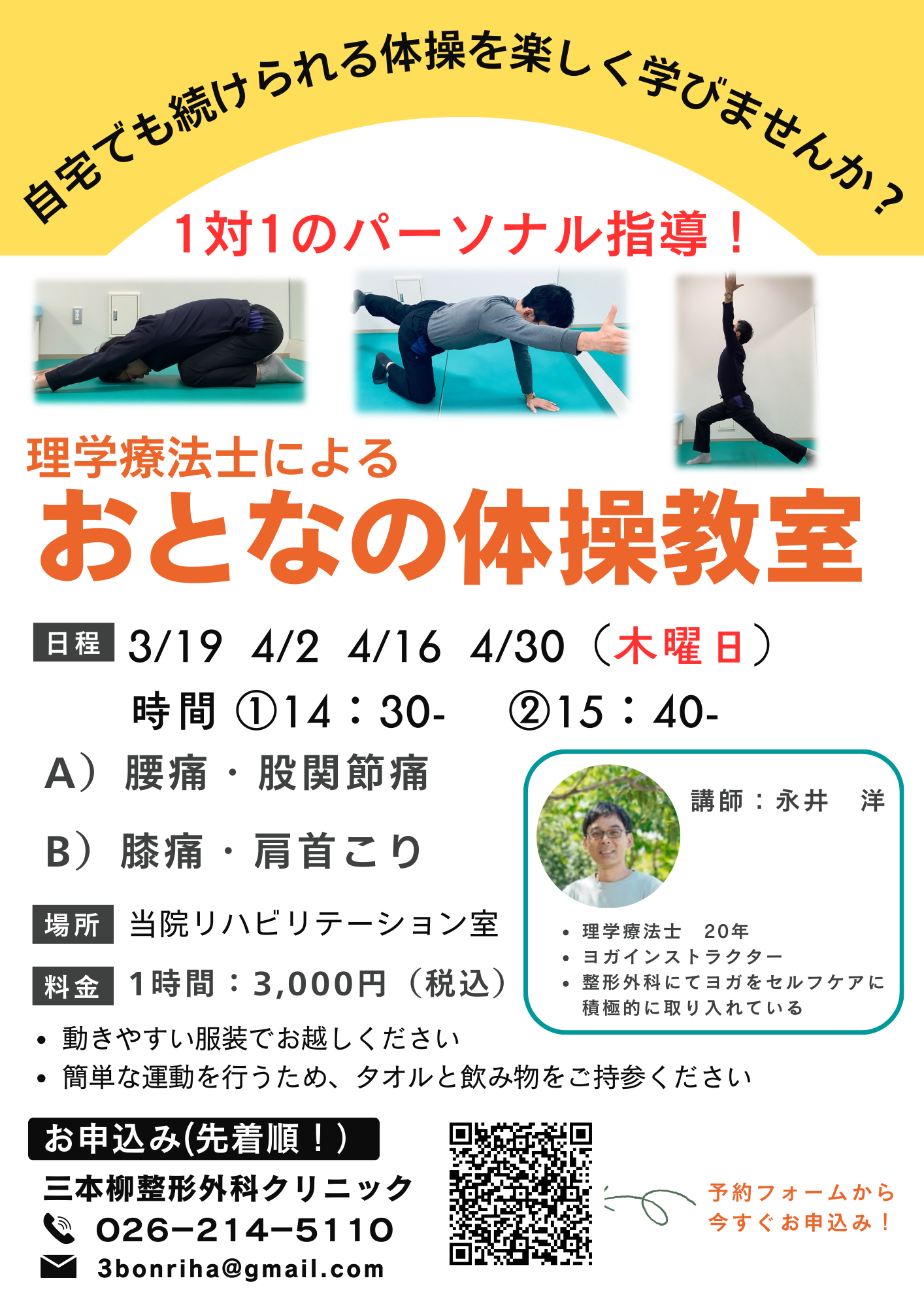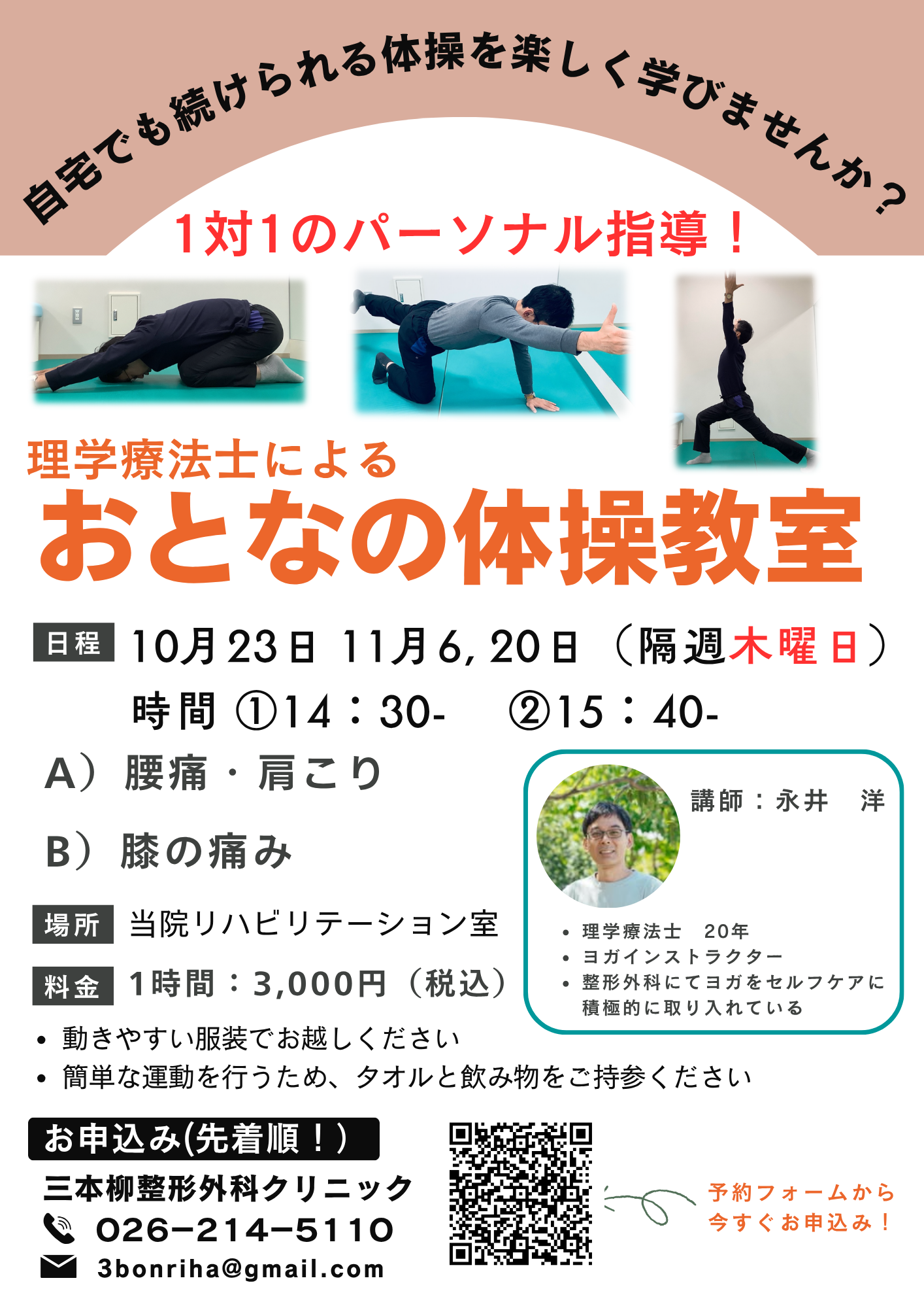 - 木曜午後、土曜午後にパーソナル体操教室を開催します!!
