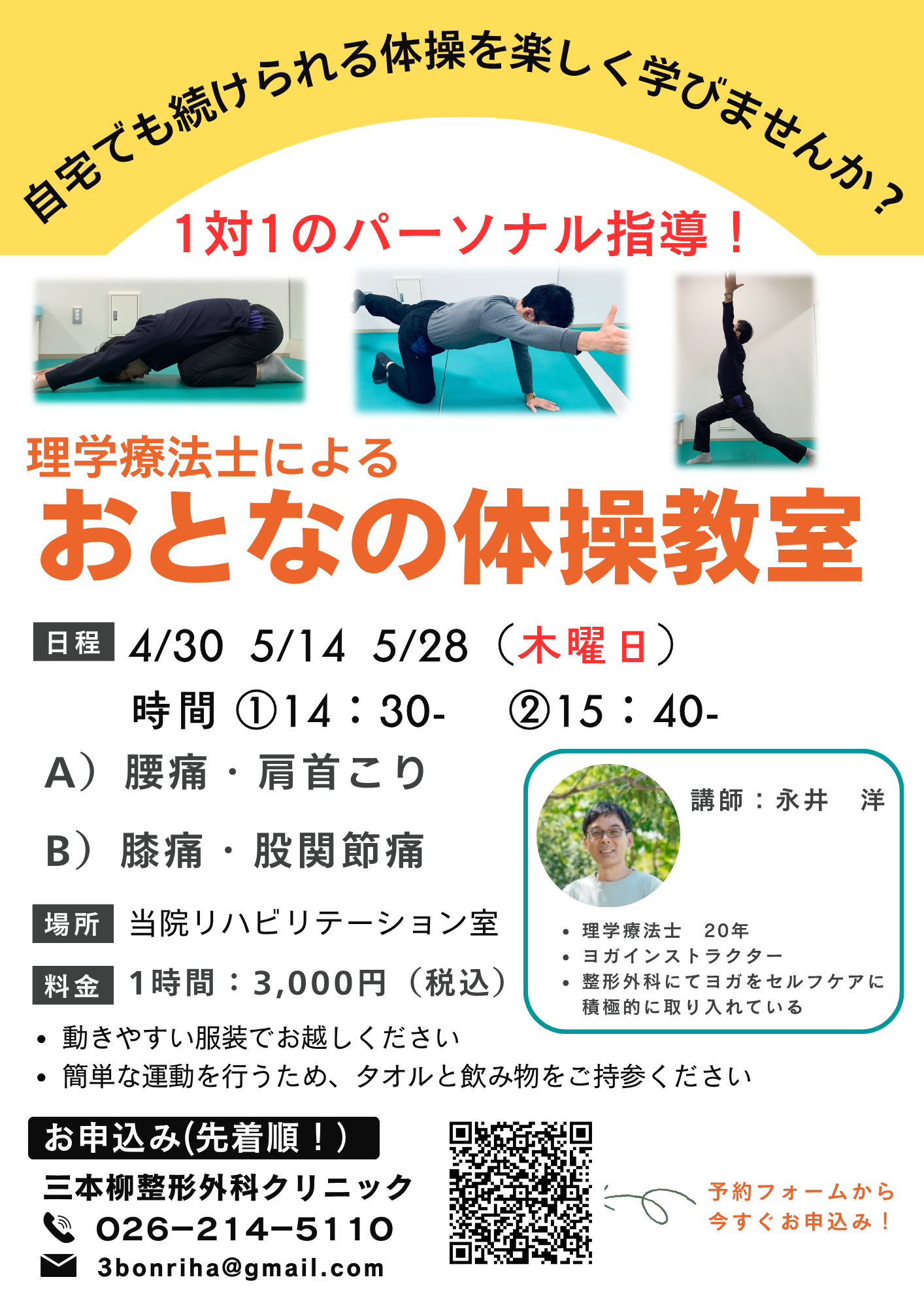 - 木曜午後、土曜午後のパーソナル体操教室 開催します!!